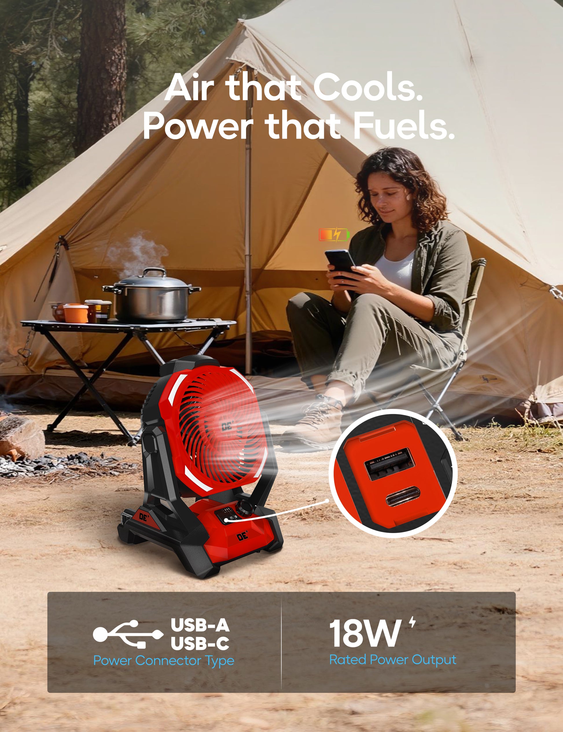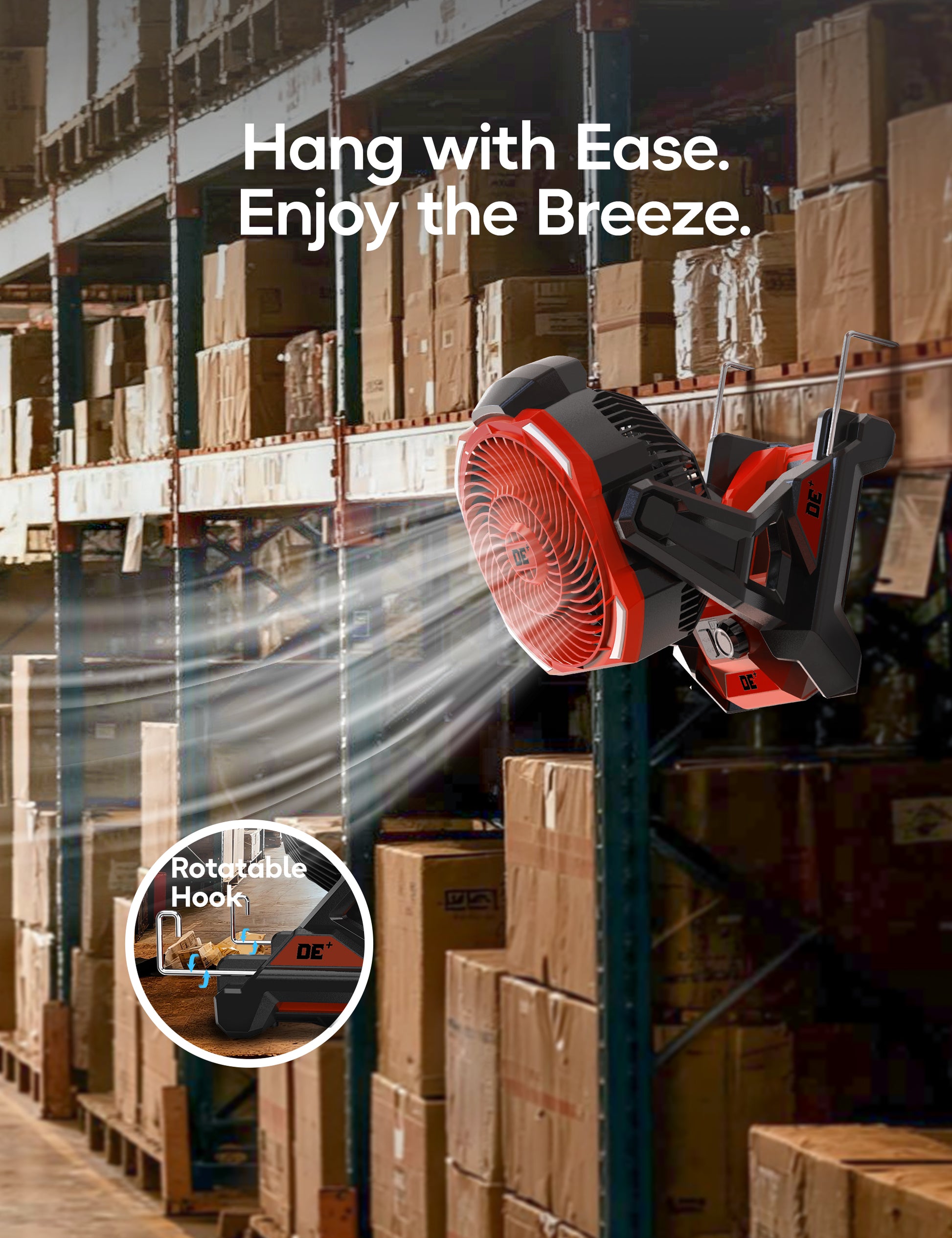 Battery Operated Fan, for Milwaukee M18 18V Battery, Cordless Jobsite Fan for Camping, with LED Lights, Hook for Hanging, Variable Speed, for Workshops, USB Port(Bare Tool Only)